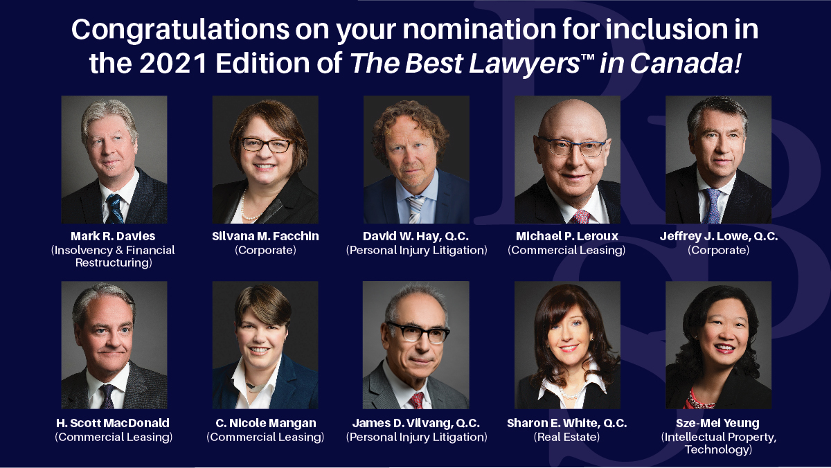 10 Lawyers Recognized in The Best Lawyers™ in Canada 2021 Publication