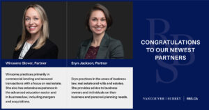 “We are pleased to welcome and announce these amazing lawyers, Winsome Glover and Eryn Jackson, to the partnership. They each bring incredible expertise to our clients in their respective areas.” – Mark Baron, RBS Managing Partner