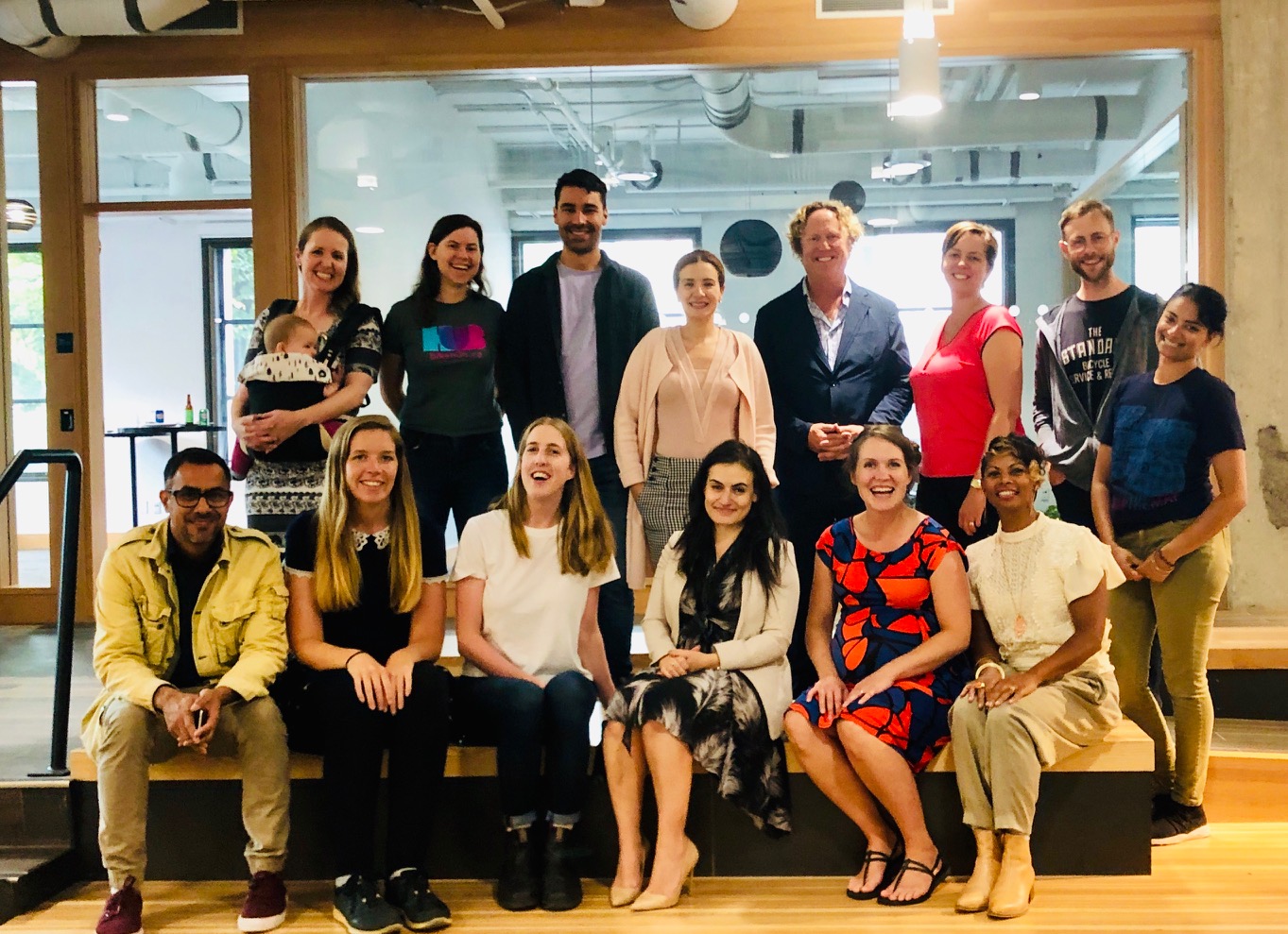 (Top Row) Laura Jane and baby Ada (Director of Corporate Engagement and Events – HUB), Kristen Elder (Bike Education Instructor – HUB), Nick (Volunteer – HUB), Michelle Quinn (Associate – RBS), David Hay (Partner and PI Practice Group Leader – RBS), Julie Facchin (Associate – RBS), Kent MacWilliam (Giving Manager – HUB) and Jennifer Rai (Office Manager – HUB).