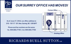 Our new Surrey office address is 310 – 15117 101 Avenue. Close in proximity to our previous office located at 200 – 10233 153 Street in Surrey, our new space allows for easy access and ample parking.